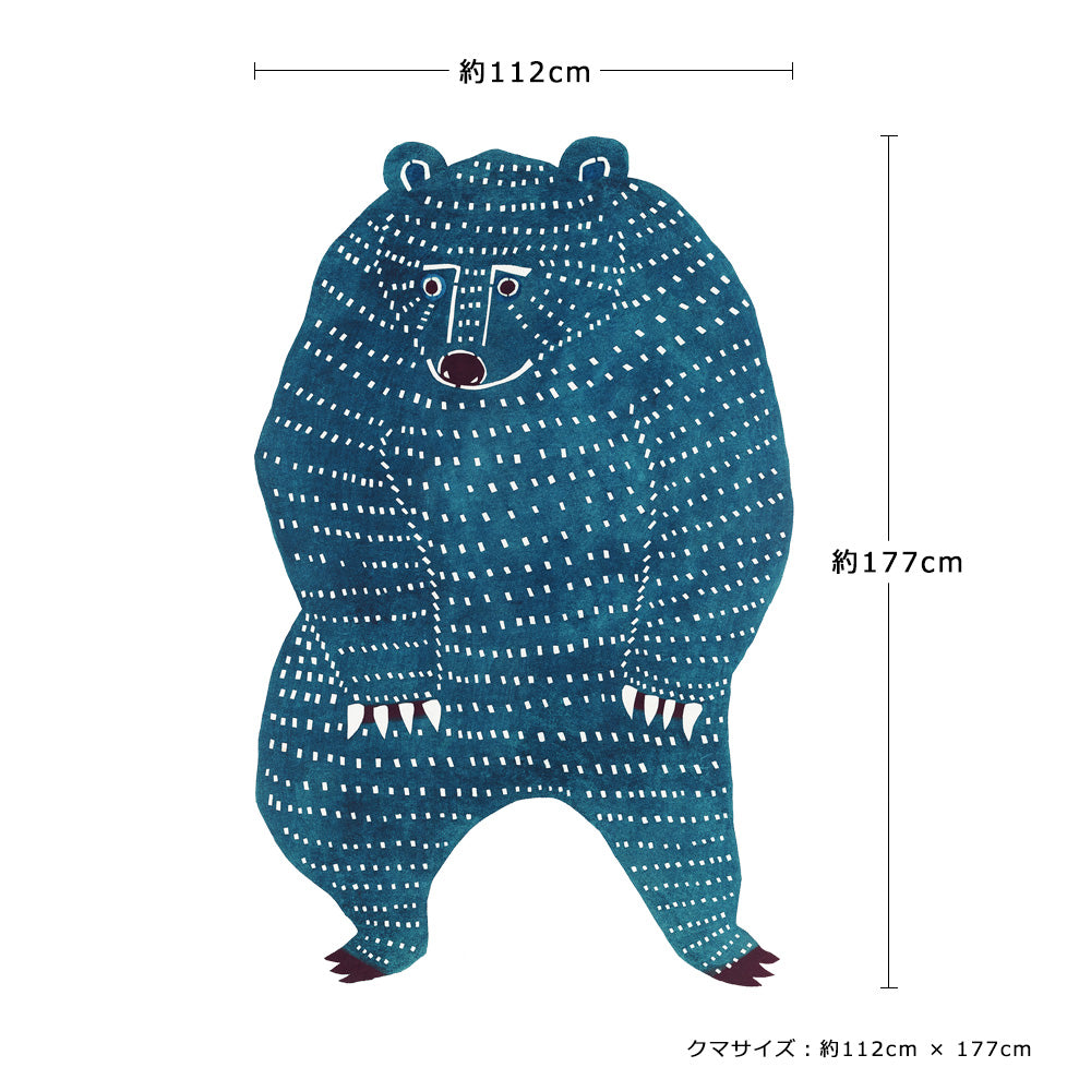 とぼけ顔で見守る大きなくまのデザイン。型染め特有の色の濃淡や滲みで優しい雰囲気に。