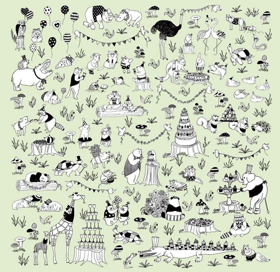 描かれている動物はすべて異なり、動物たち一匹一匹の表情やしぐさに注目。そこにはさまざまなストーリーがあり、想像力を掻き立てられるデザインです。