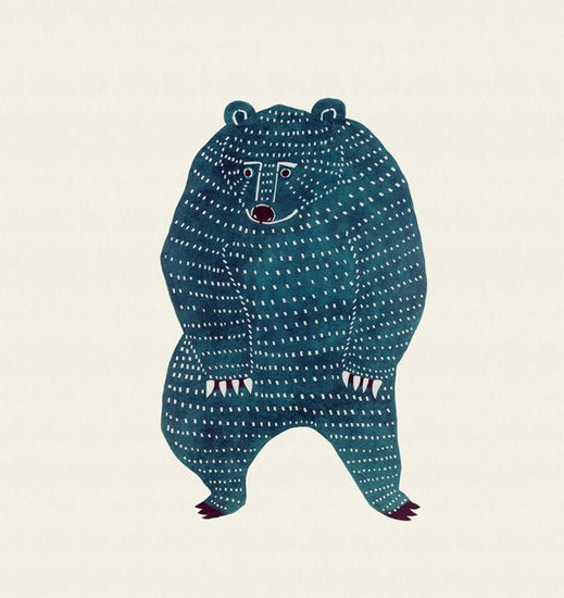 とぼけ顔で見守る大きなくまのデザイン。型染め特有の色の濃淡や滲みで優しい雰囲気に。