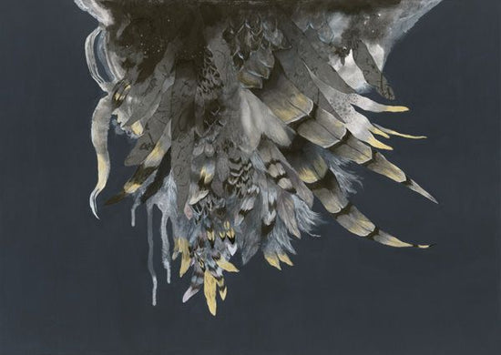 モチーフは日本の固有種である山鳥の羽、ブルーグレーの夜の世界にしています。床の間の空間にワンポイントになる壁を作れたらおもしろいな、という思いから生まれたデザインです。