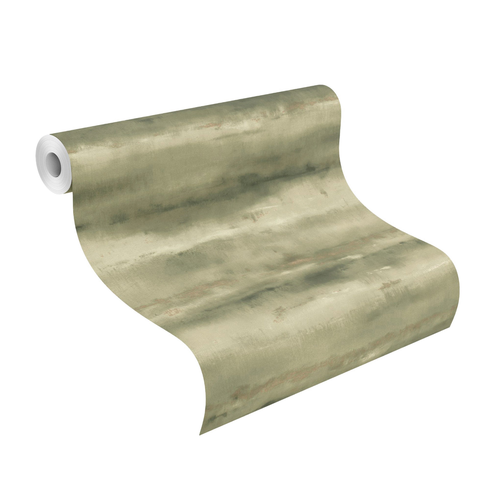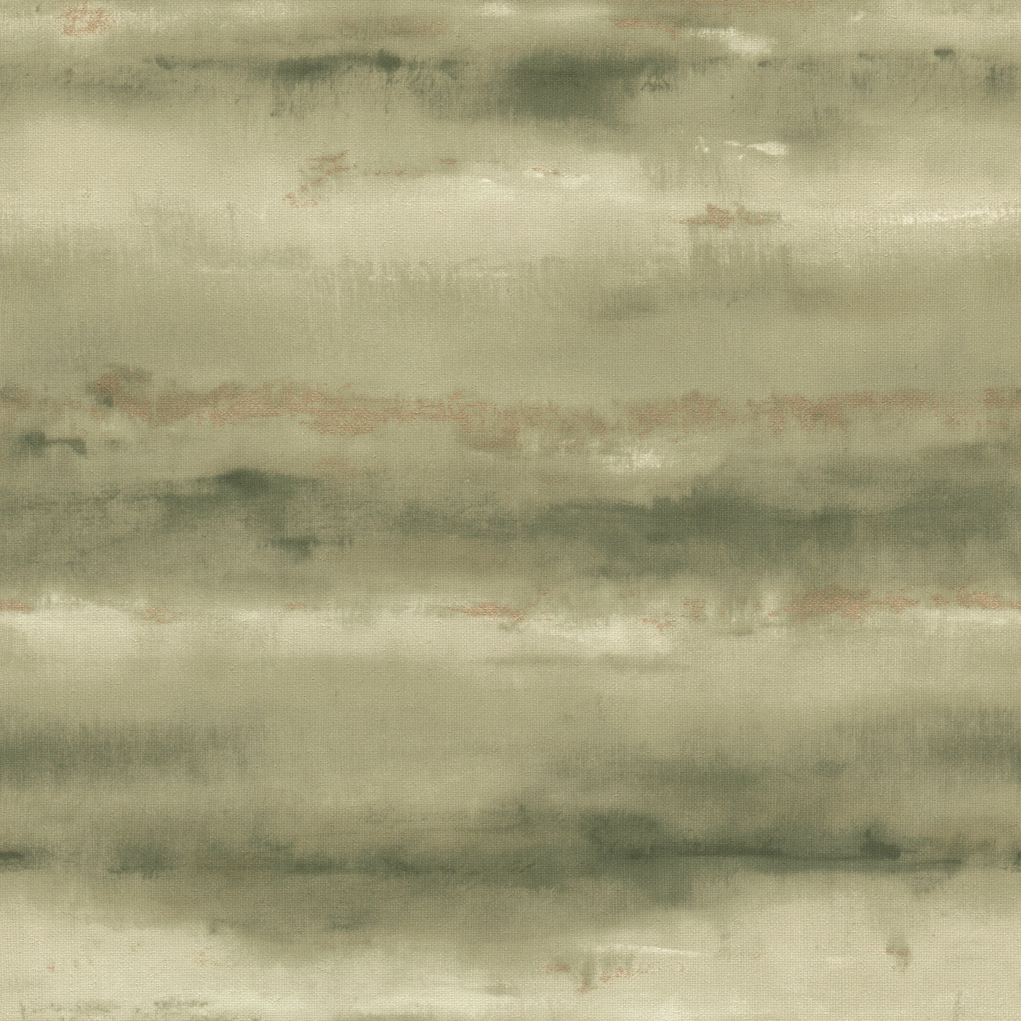 ソフトな水彩とハードなメタリックのアクセントが柔らかく融和して、地層のようなボーダー柄を描きます。横に広がるアースカラーのグラデーション効果で、実際の部屋よりも広く感じることでしょう。カラー展開は、ベージュとモスグリーン。安らぎと温もりを感じる空間に仕上げます。