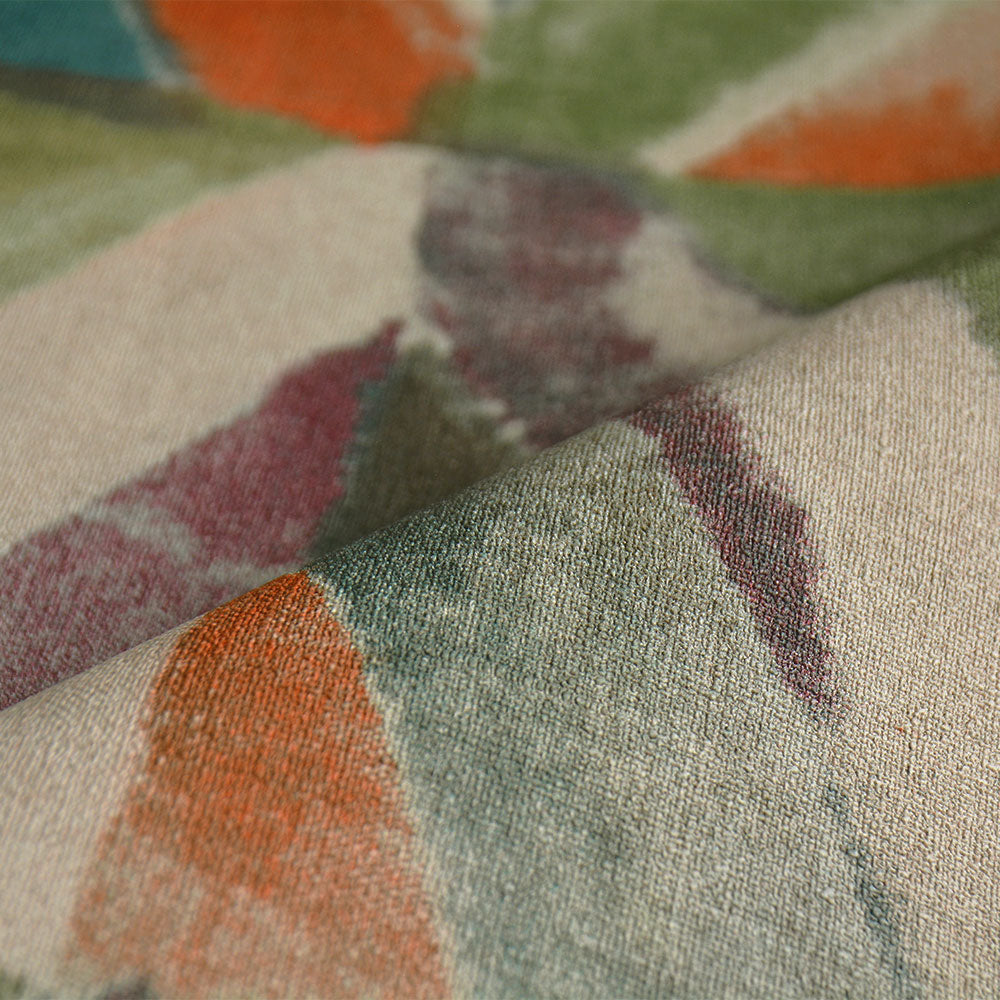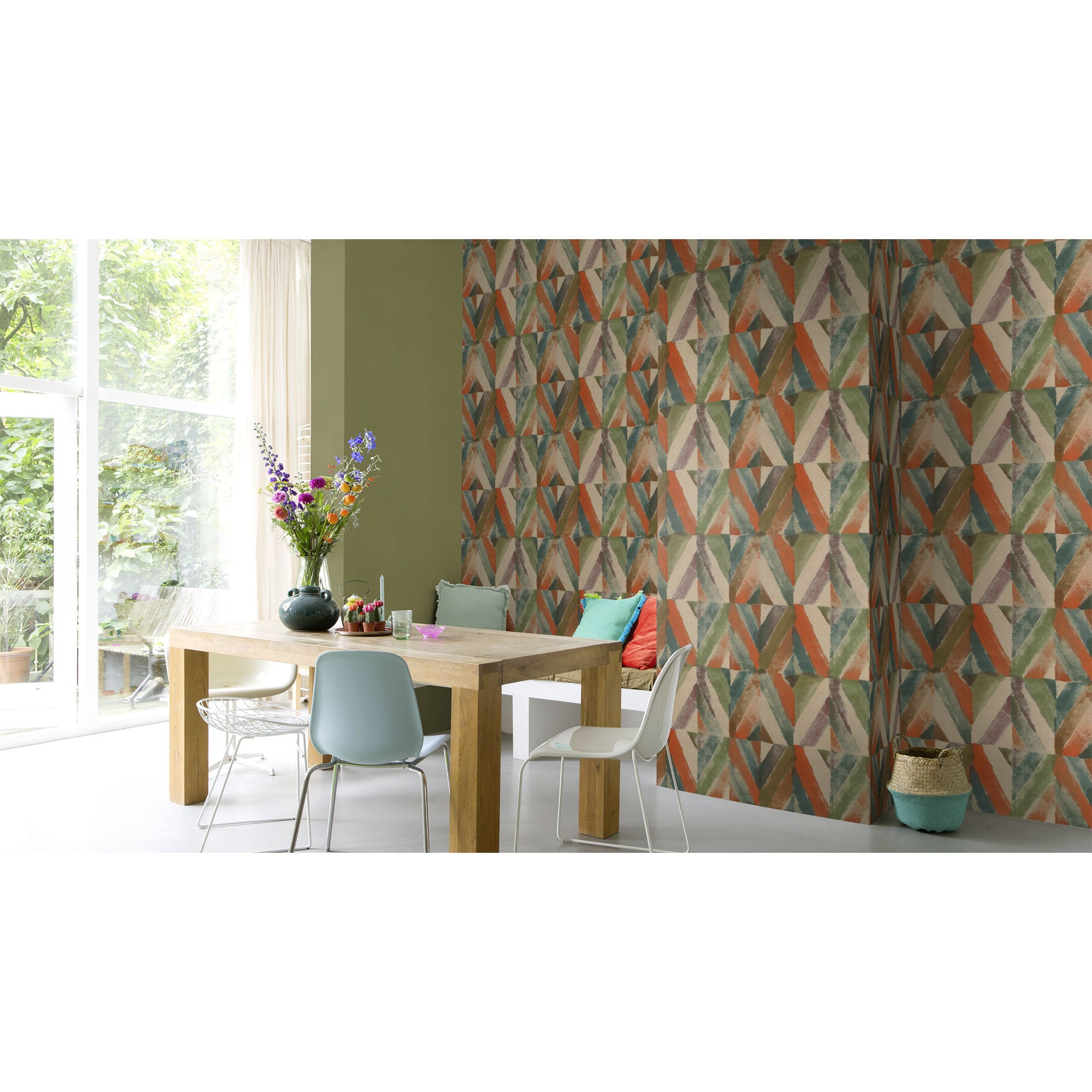 アフリカンテキスタイルのペインティングとファブリックを思わせる表面のテクスチャーがこのデザインの世界観を作り出しています。アースカラーを基調にしているのでシックで居心地の良い空間演出ができます。