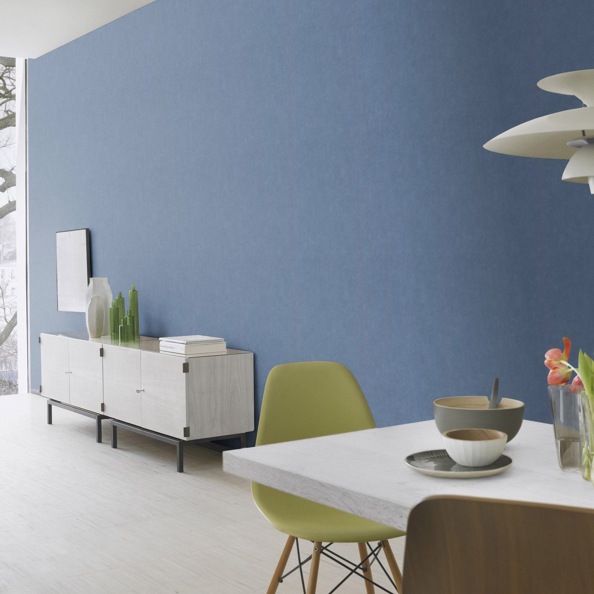 繊細な上品さと芸術的な魅力を兼ね備えたこの無地壁紙は、きめ細やかな織物のような質感と独特な色使いが巧みに組み合わされています。思わず触れてみたくなるようなテキスタイルの表面は、空間に温かみを添えます。印象的なブルーの色合いは、まるで画家が筆と水彩絵の具で描いたかのような、安らぎと心地よさをもたらします。