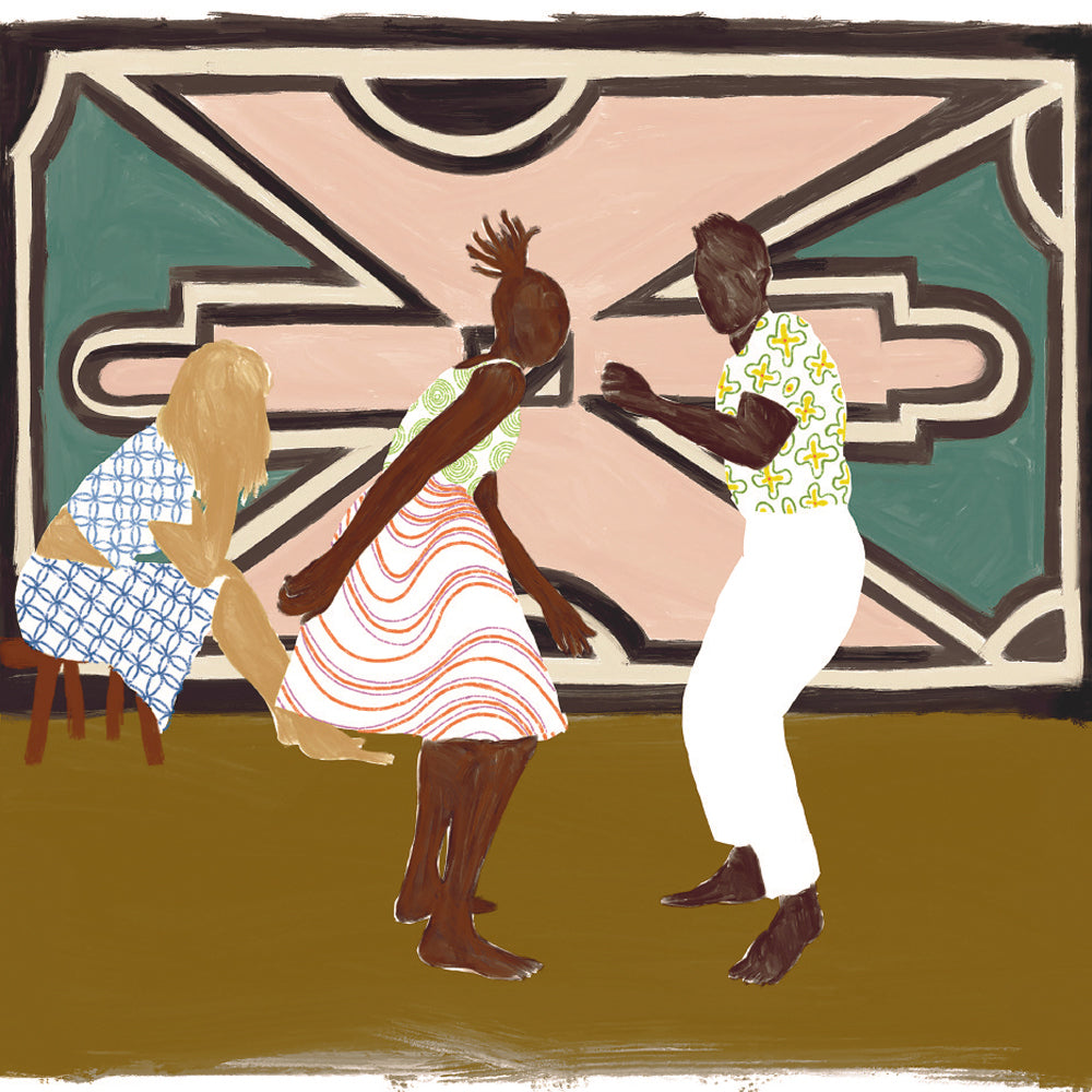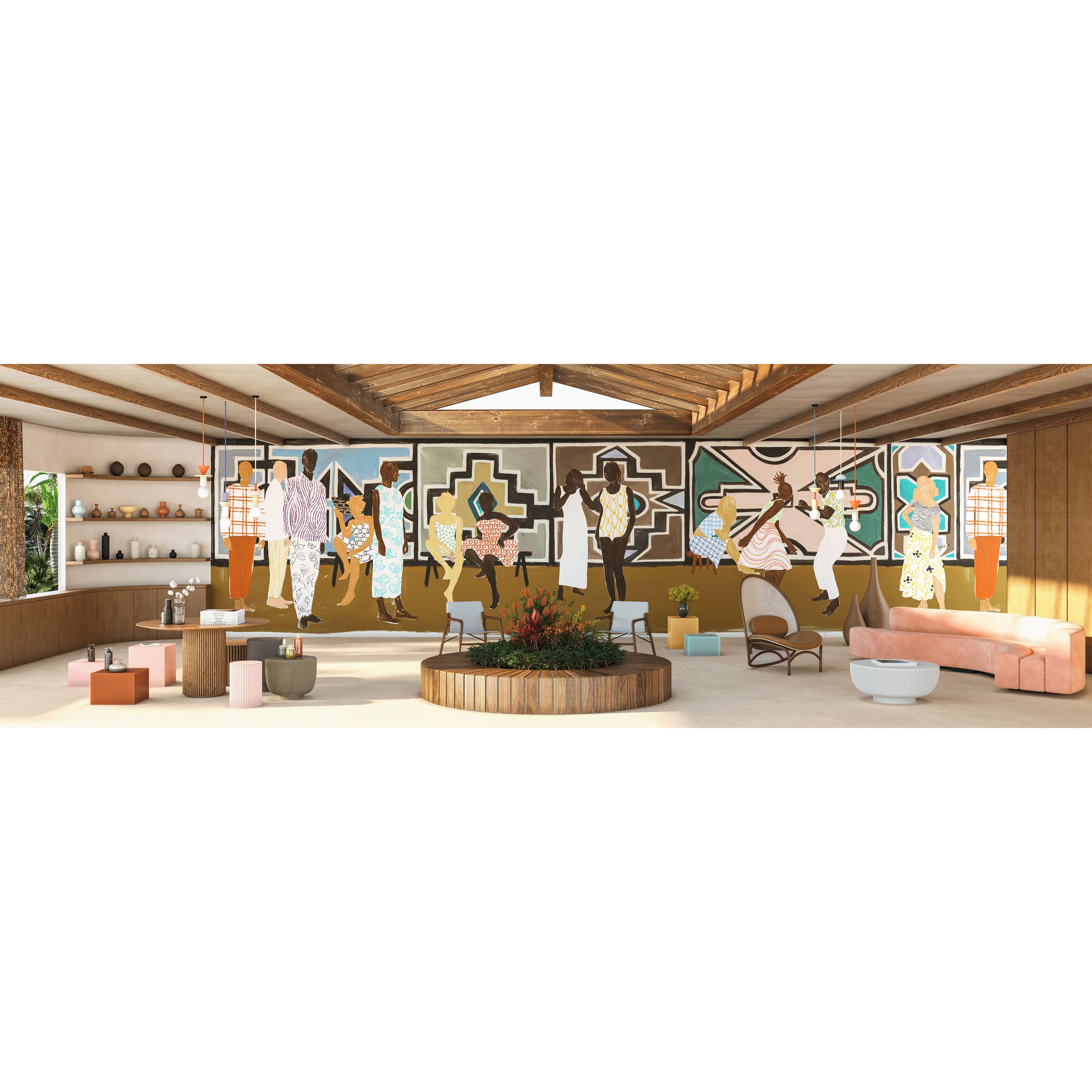 アフリカンデベレ族の住宅の壁面を飾る伝統的なジオメトリックデザインを都会のパーティーシーンに持ち込みました。