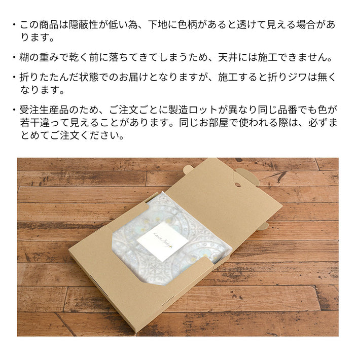 パッチワークのように45cm角のピースを並べて貼る壁紙。