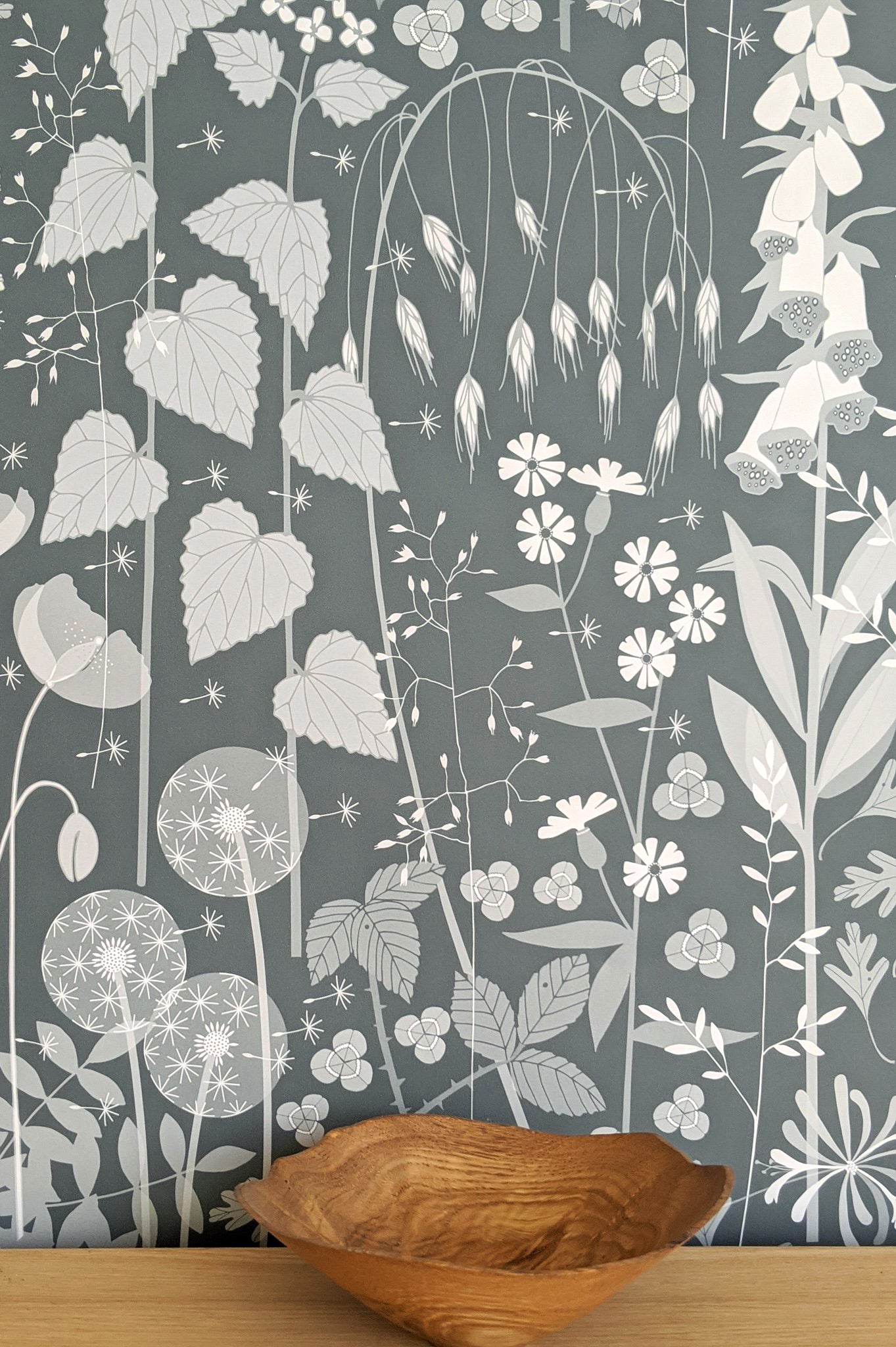 イギリスの小径で見かける可憐な草花を76cmのビックスケールの中に納めデザインしました。