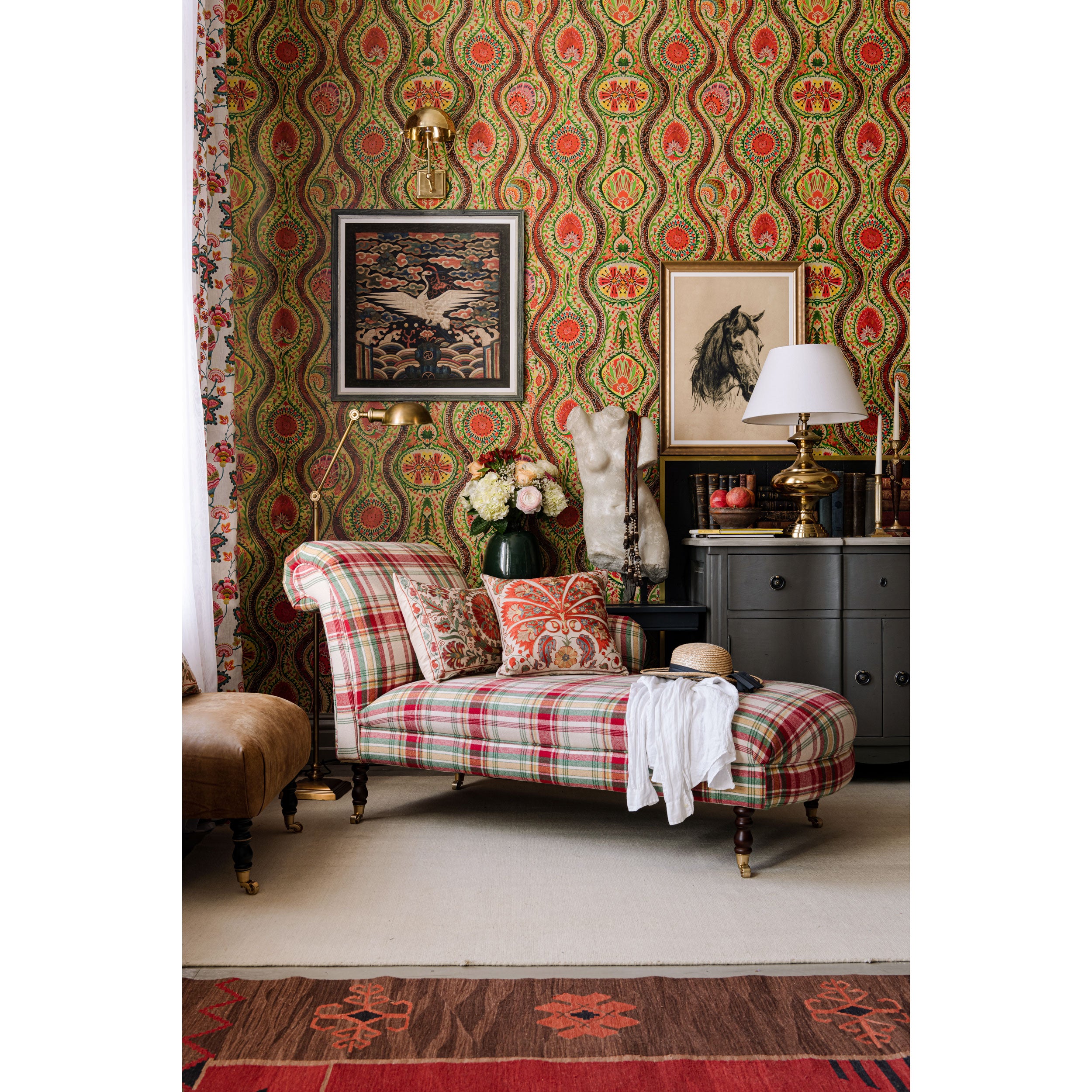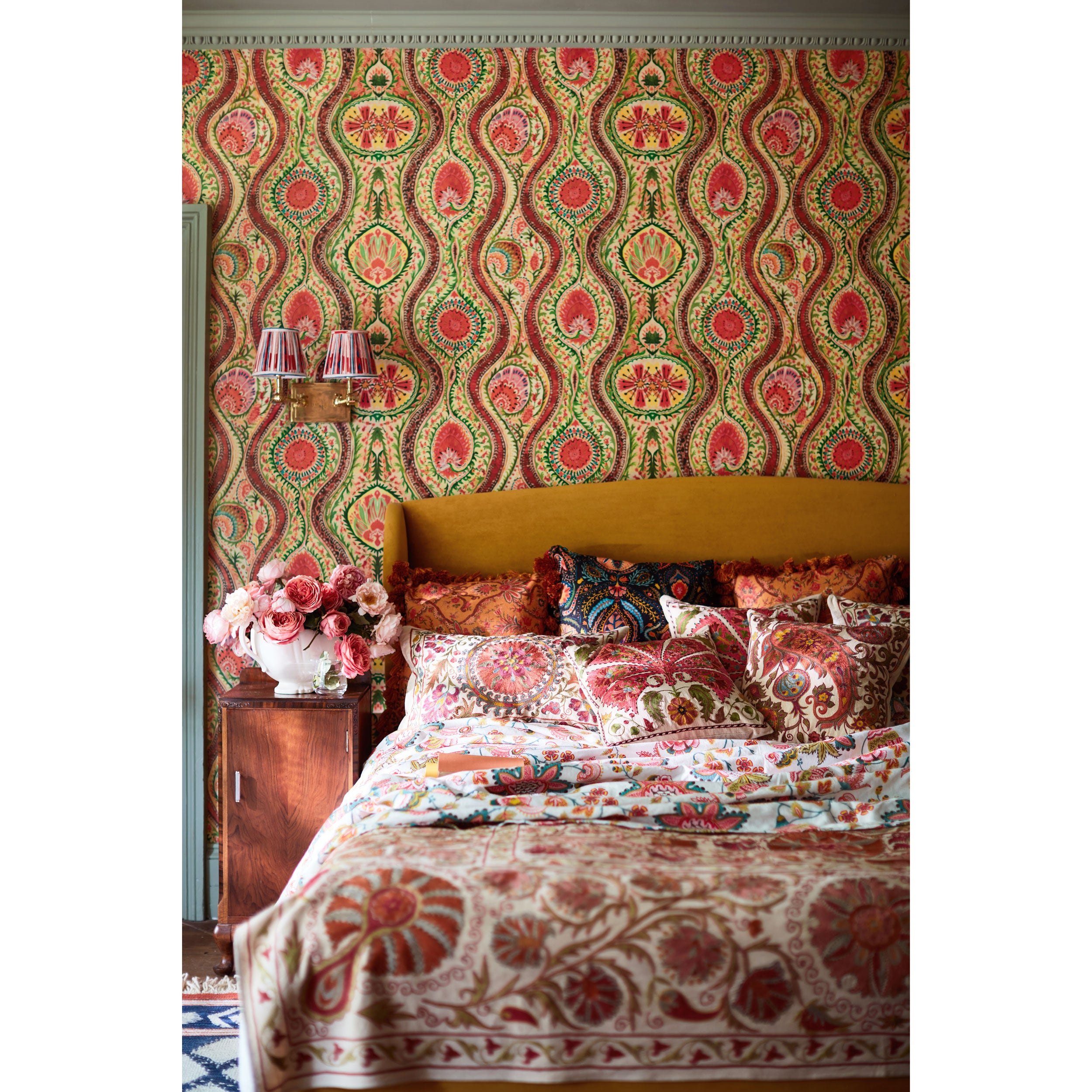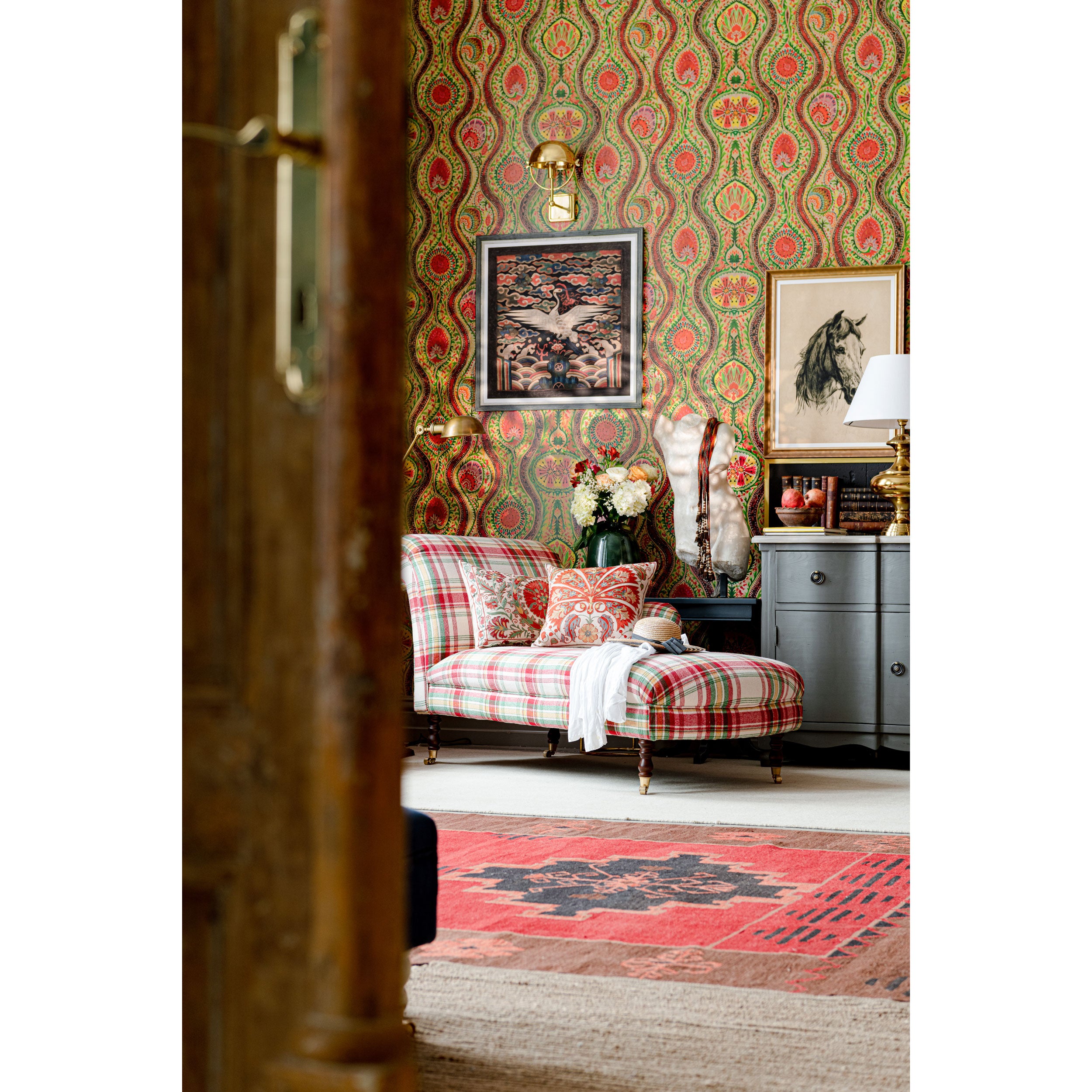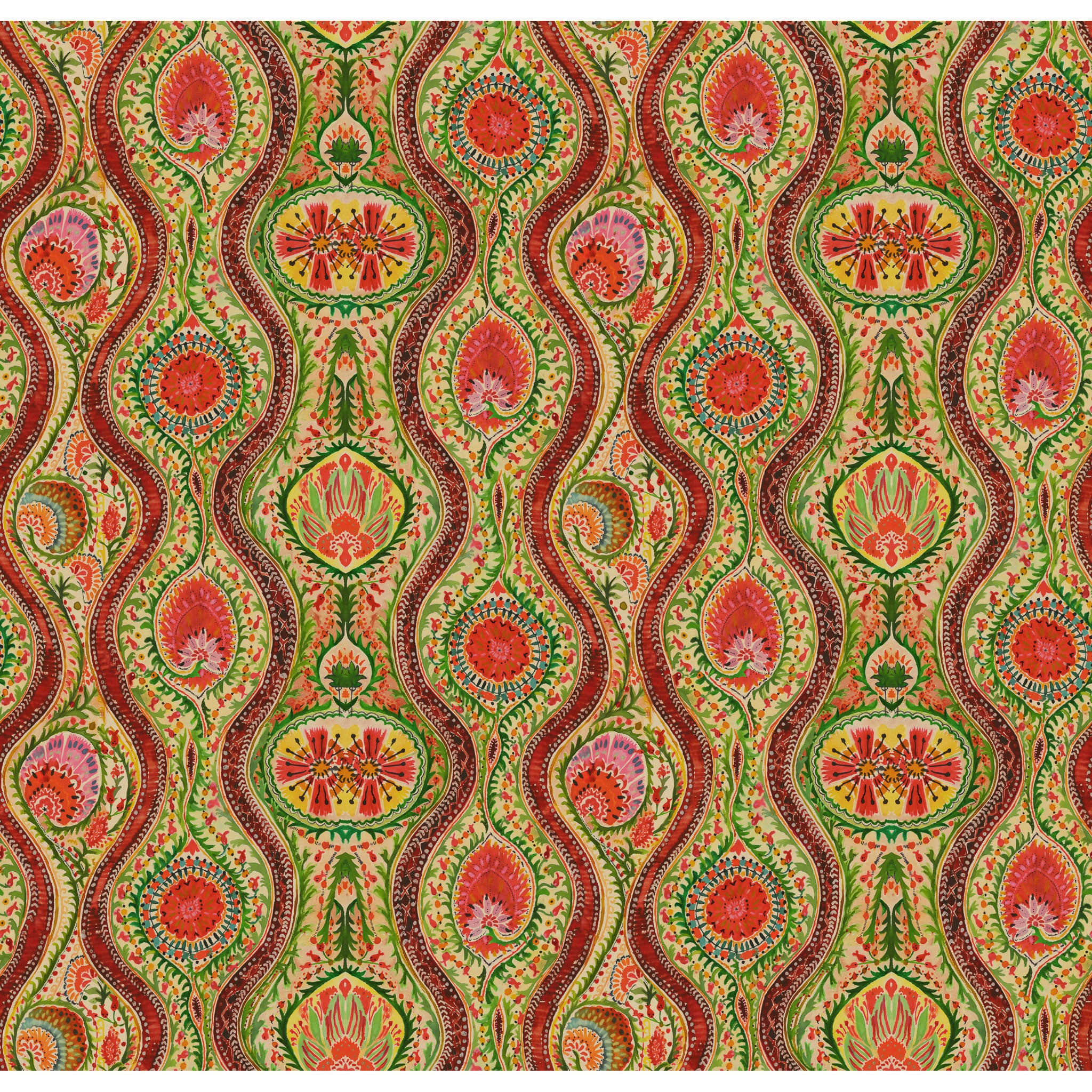 時代を彷彿させるHIPPIE PAISLEYプリントは、ピンクと赤の華やかなモチーフと補色関係のパステルグリーンとイエローで魅惑なボヘミアンの世界に誘います。
