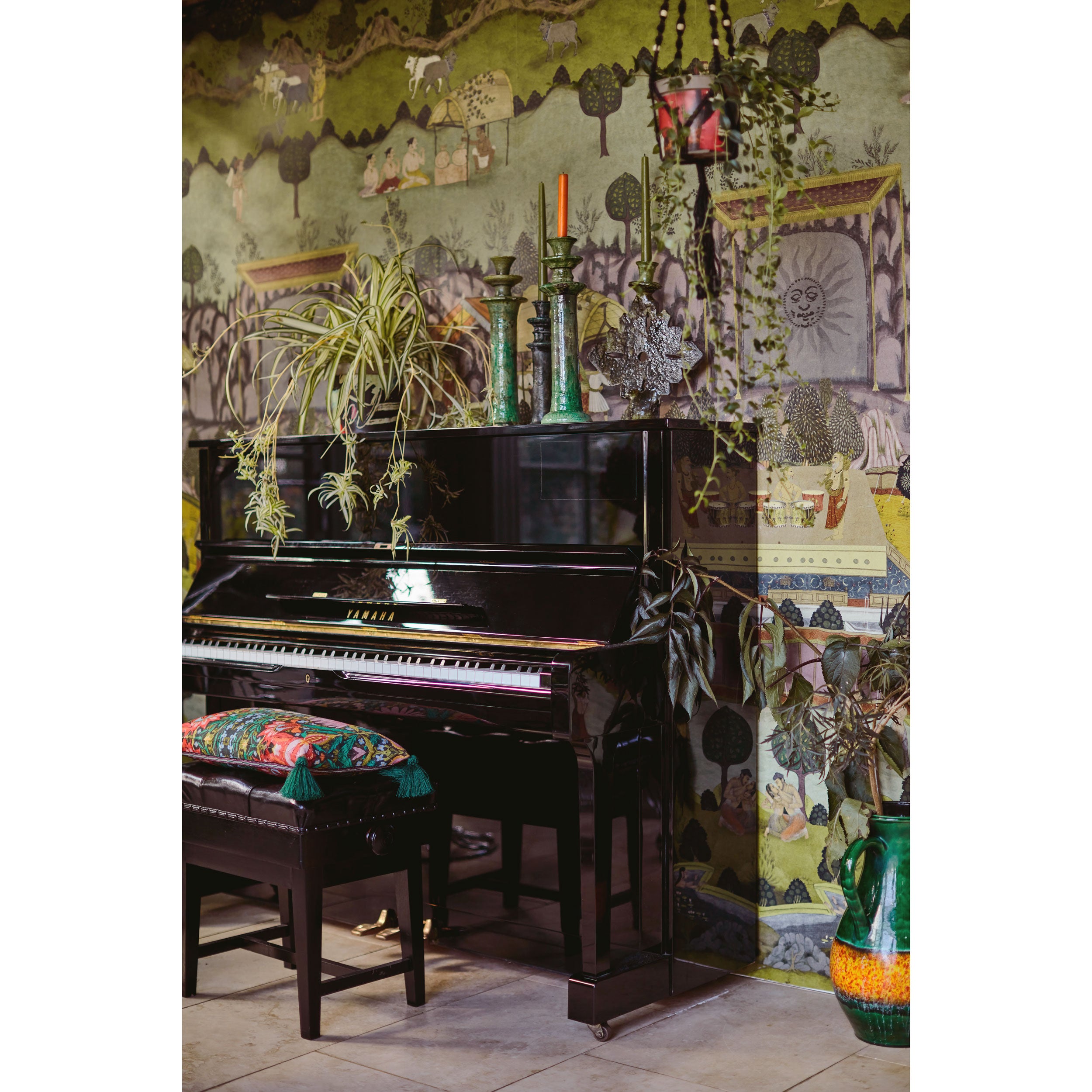 PEACE AND MUSICのプリントでは,そこにいる人達をメロディーで繋義、穏やかで幸せに満ちた環境を表しています。