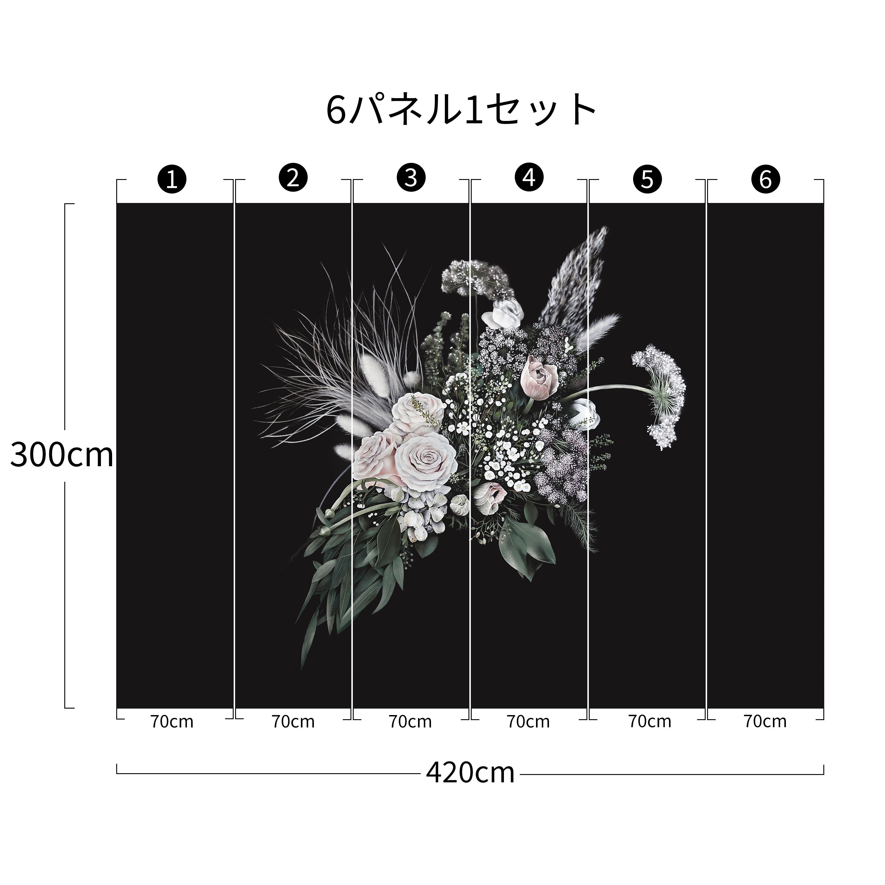 | サイズ | 420cm×300cm (1パネル:70cm×300cm) |