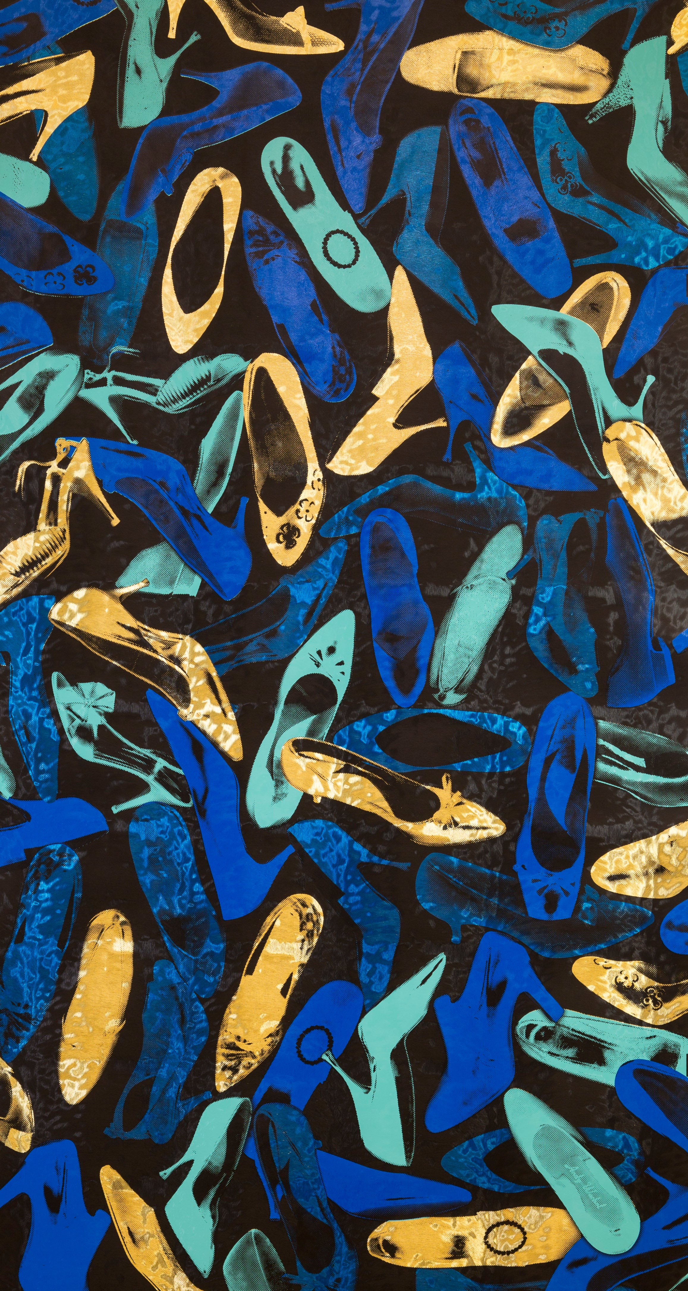 Andy Warhol / SHOES / Blue Suede on Gold Pony Skin Foil (single roll)