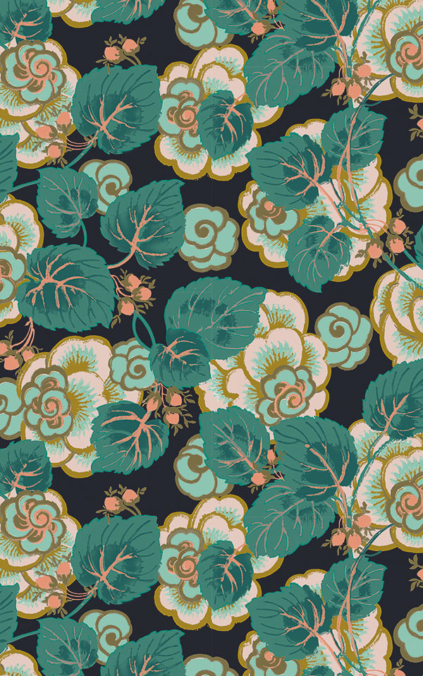 バラのモチーフを様々な色合いで現代的にリデザインしたもの。