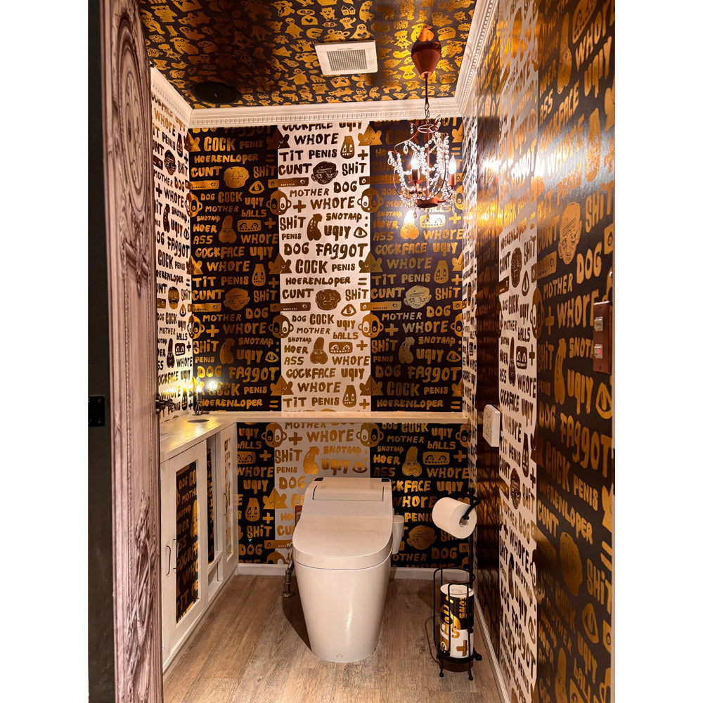 Bas Kostersのファッションデザインとしてデビューした「Cursing」がNLXLの監修「Gold Foil Wallpapers Collection」でついに壁紙としてリリース。美しいものと酷いものとの表裏一体の世の中の風刺も込めて「That puts the U in UGLY」のデザインを感じてほしい。Black, White, Beigeをベースカラーにゴールドのメタリックインクでシンプルゴージャスに壁を飾ってみよう。クールな空間ができること間違いなし。
