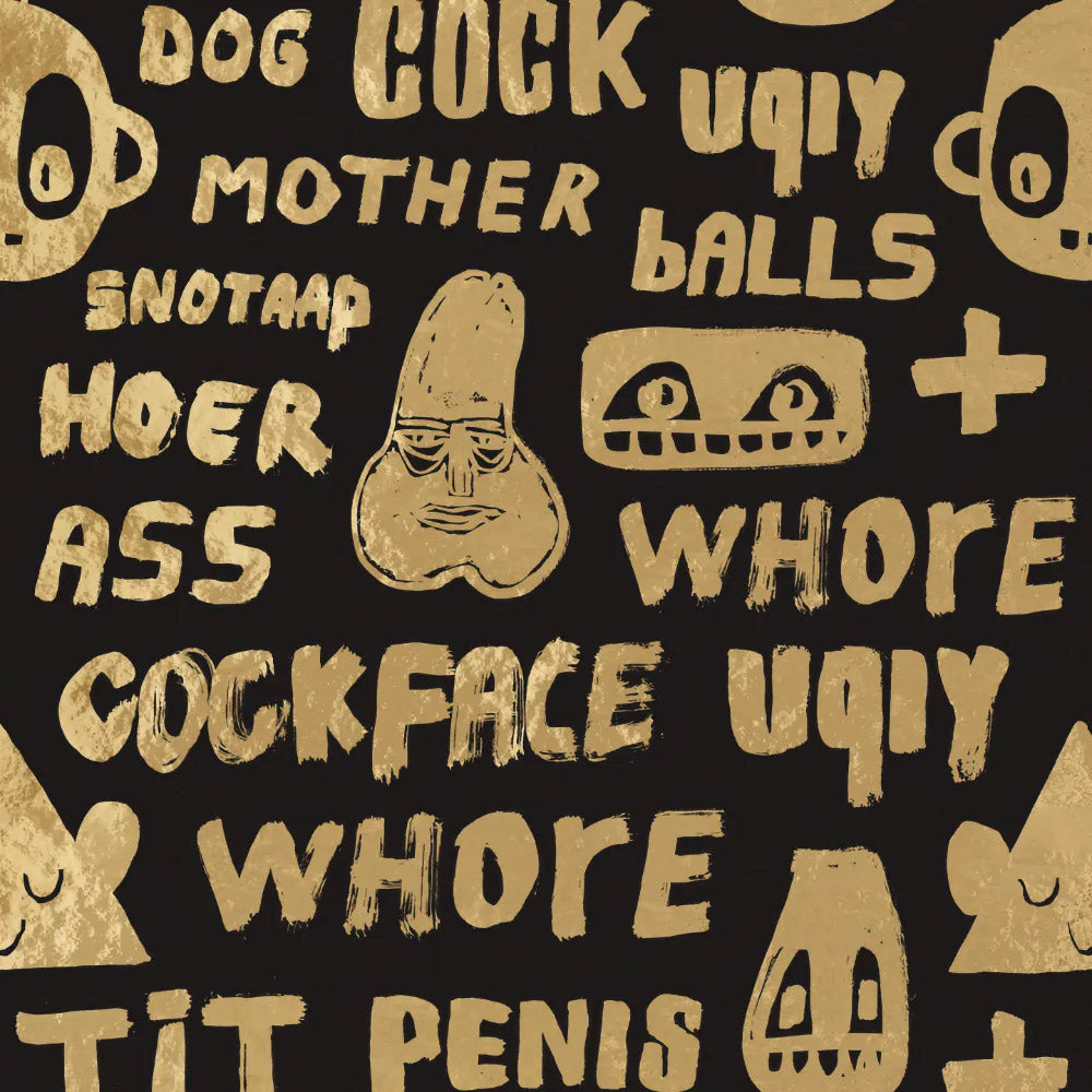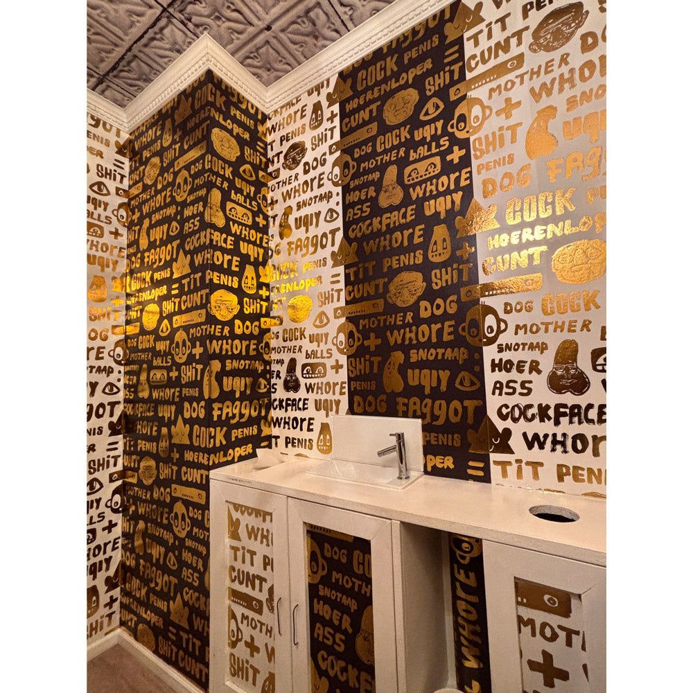 NLXL Gold Foil Wallpapers / Cursing Print by Bas Kosters / Gold Foil on black BKS-01