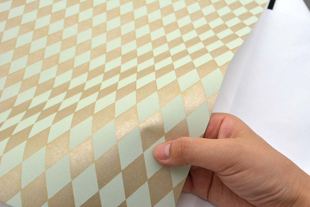 クラシックなひし形をモチーフに、光沢のある素材を使用した贅沢な壁紙です。