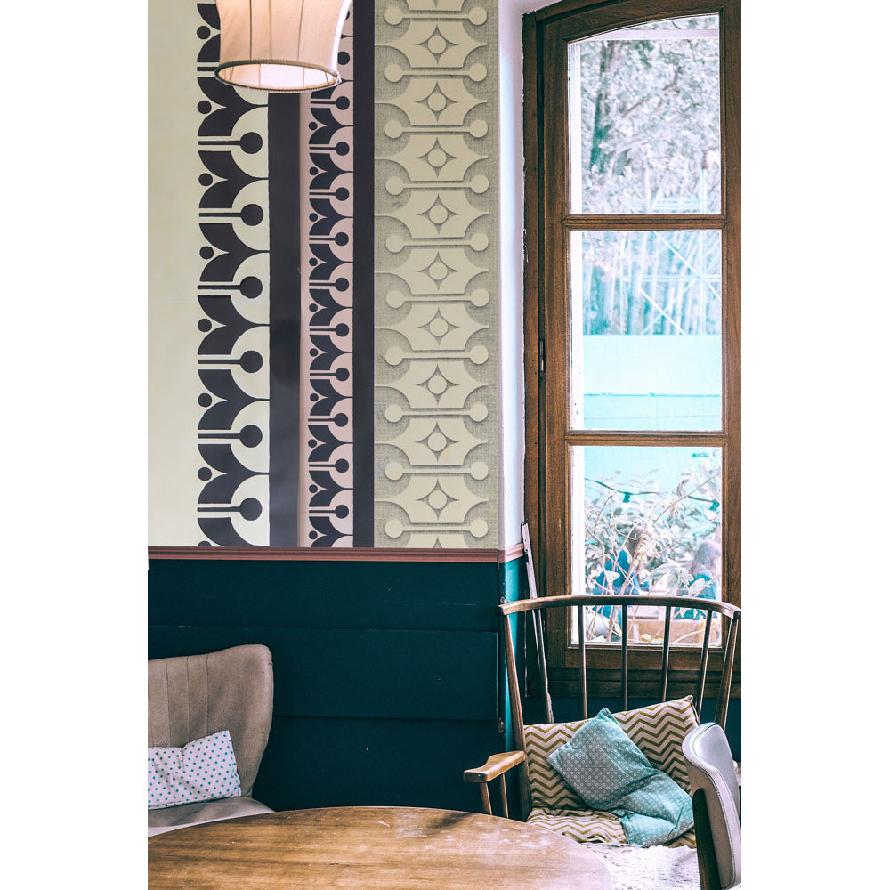 陶器のデザインが壁紙へとリデザインされて、ヴィンテージな美しい世界観を醸し出しています。
