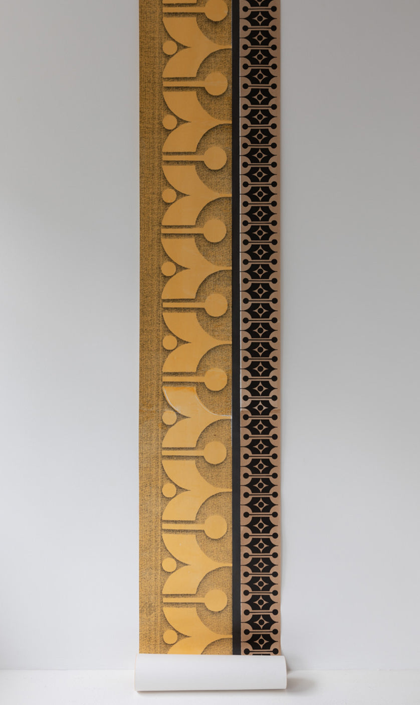 陶器のデザインが壁紙へとリデザインされて、ヴィンテージな美しい世界観を醸し出しています。