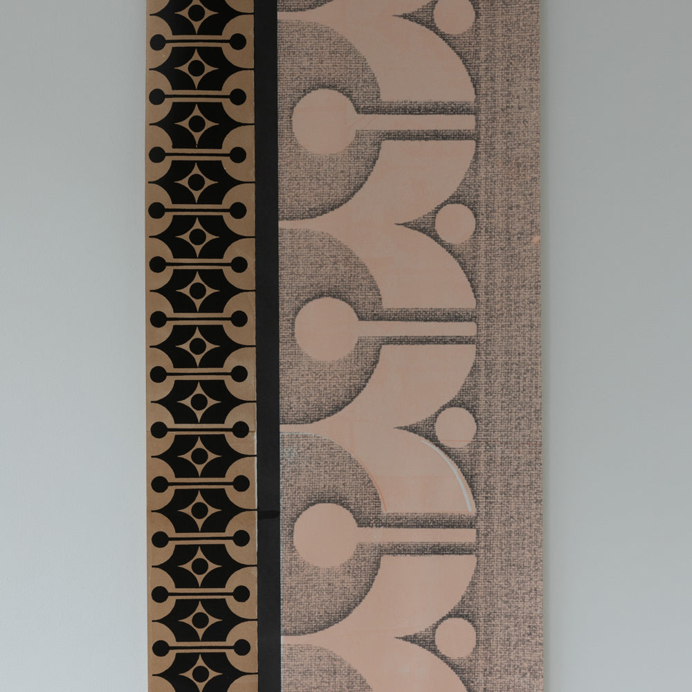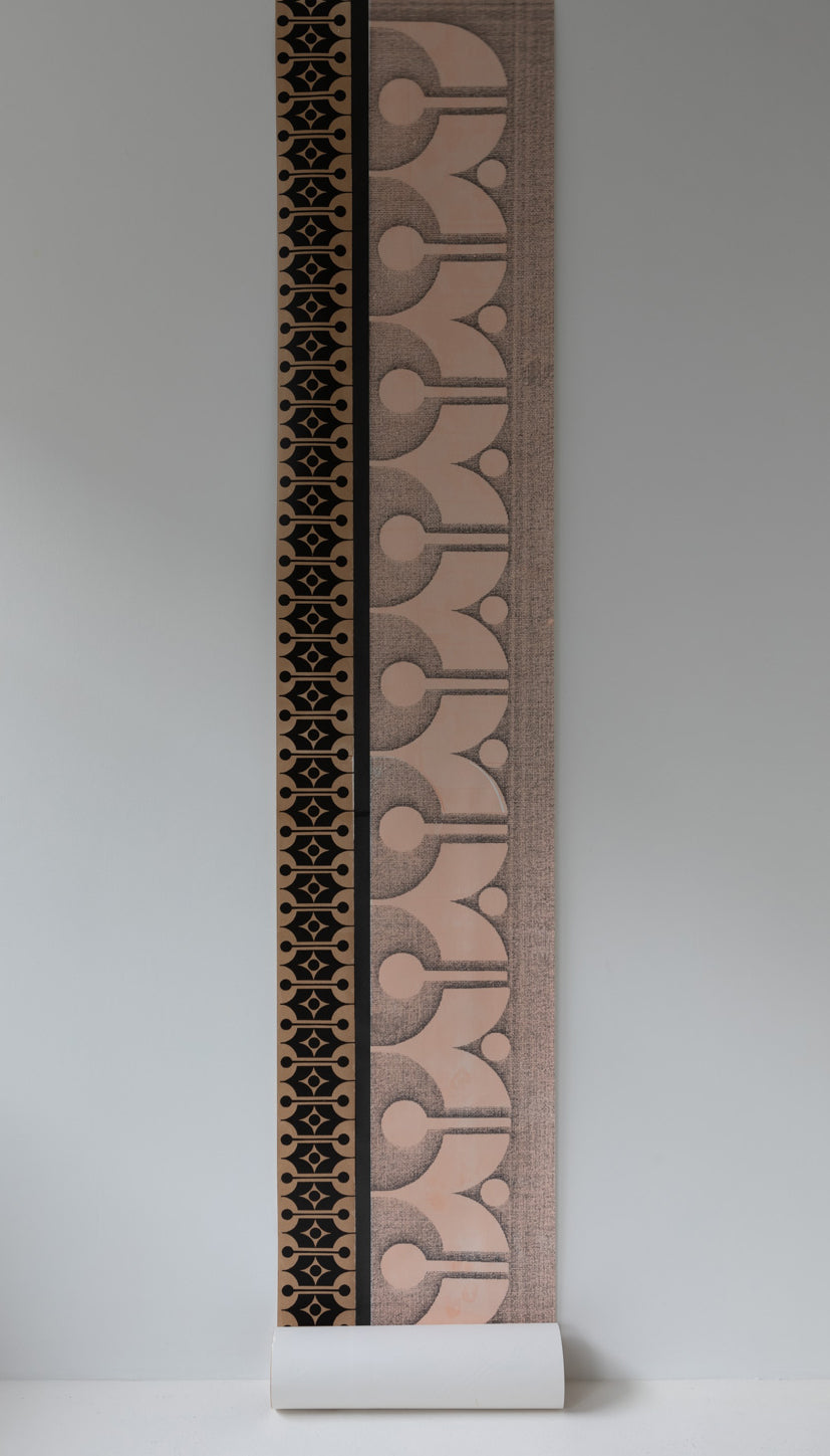 陶器のデザインが壁紙へとリデザインされて、ヴィンテージな美しい世界観を醸し出しています。