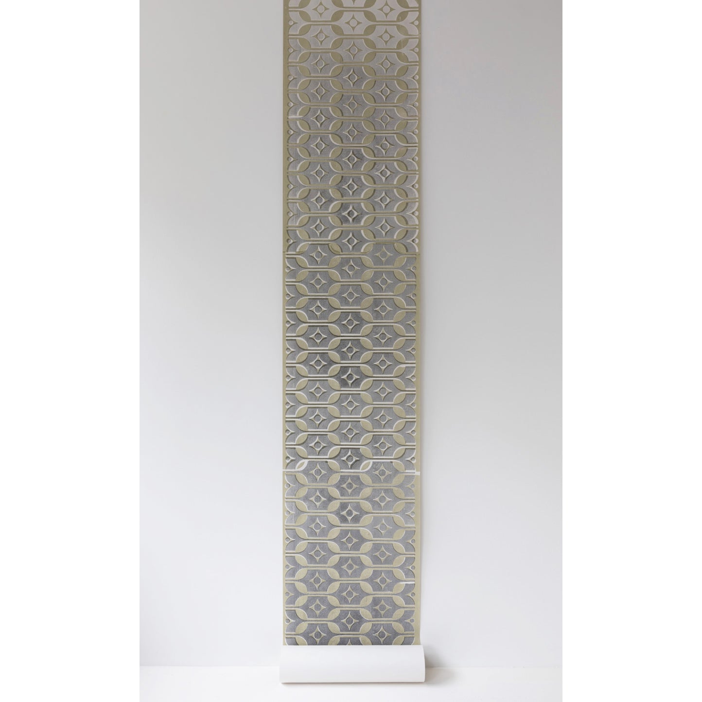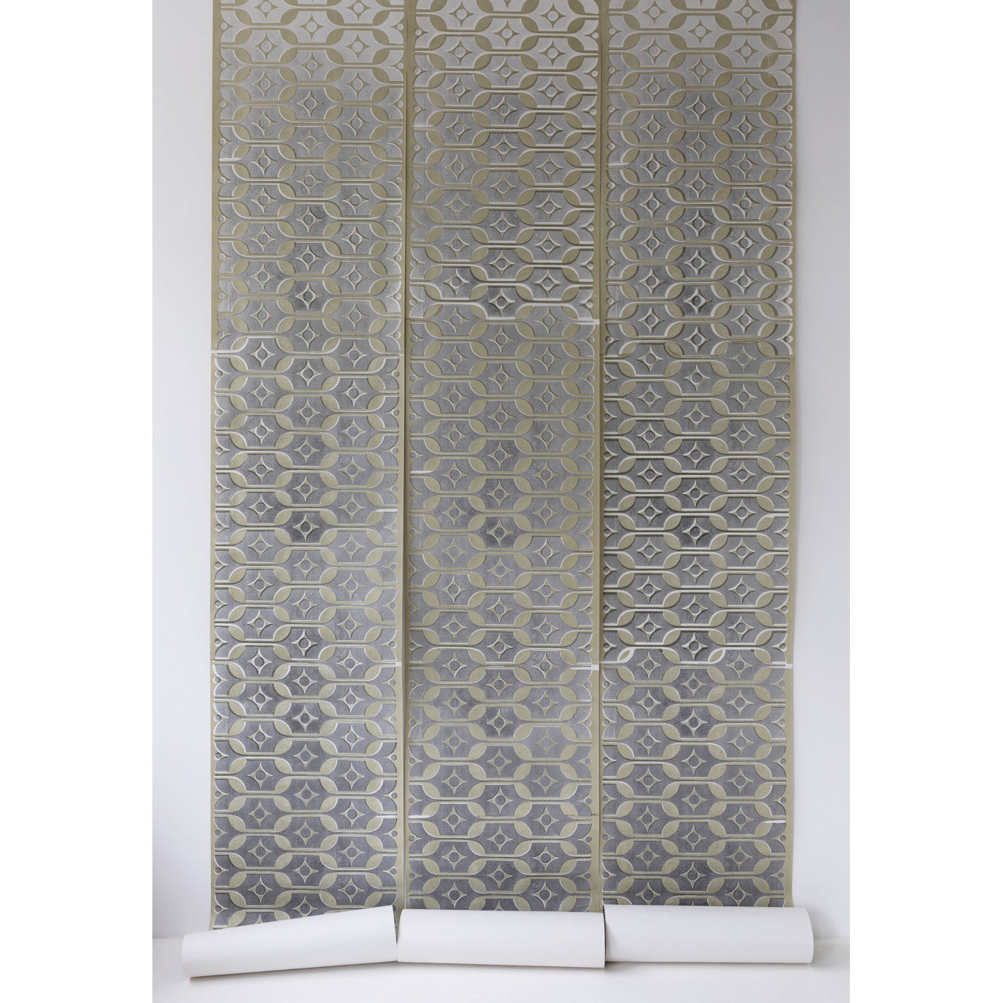 陶器のデザインが壁紙へとリデザインされて、ヴィンテージな美しい世界観を醸し出しています。