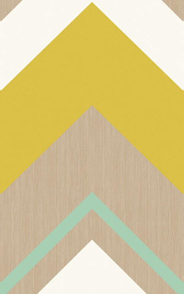 幾何学模様のデザインは木目調とホワイトカラーをベースに