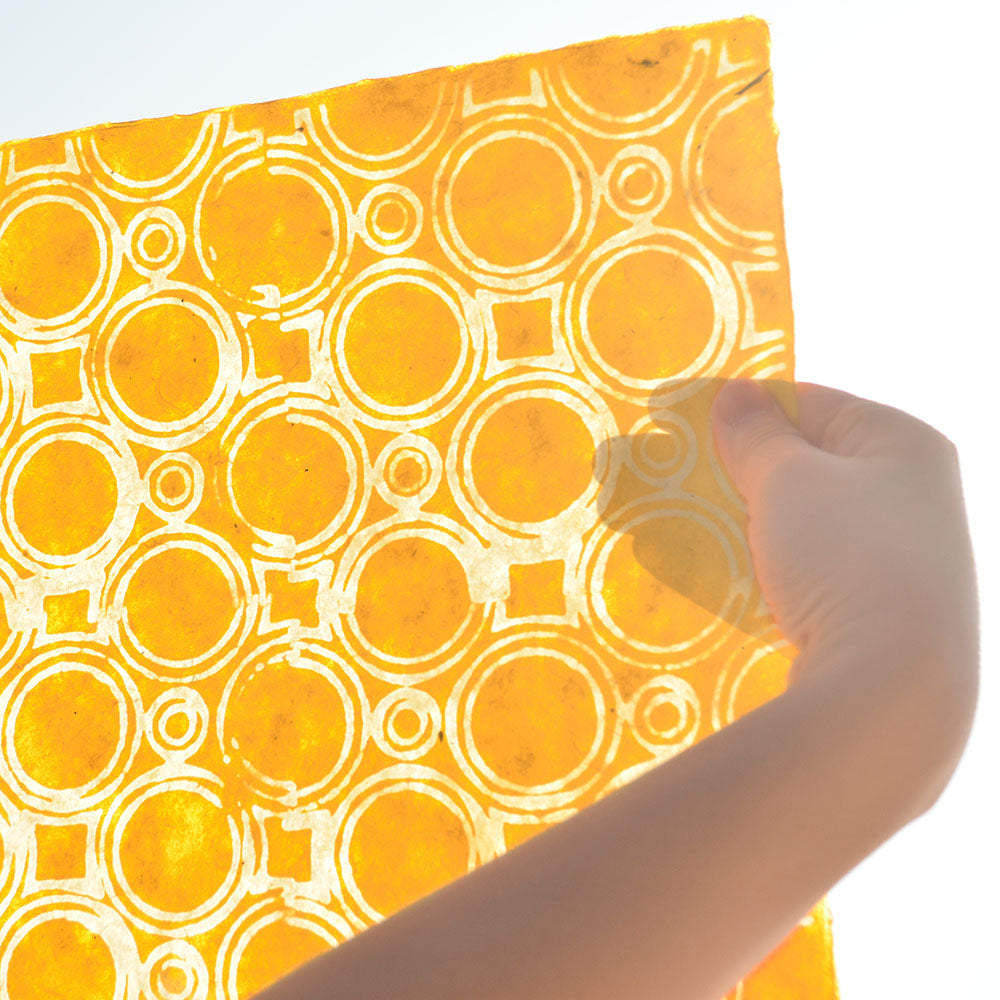 WALLPAPERは蝋纈(ロウケツ)染めの技術を用い、フランスでリデザインされ、ネパールで作られています。