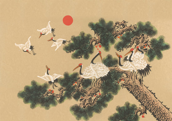 日本を代表する丹頂鶴と松のモチーフを大きなサイズの壁画的壁紙に仕上げました。