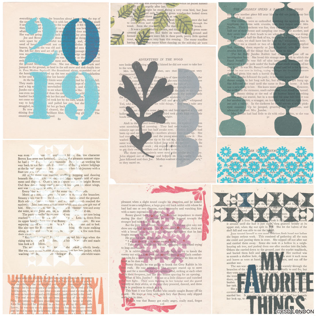 そんな古い本を丁寧に解体して、優しい紙質を生かしながら版画やハンドプリントなどを施して新しい物語にしてみました。