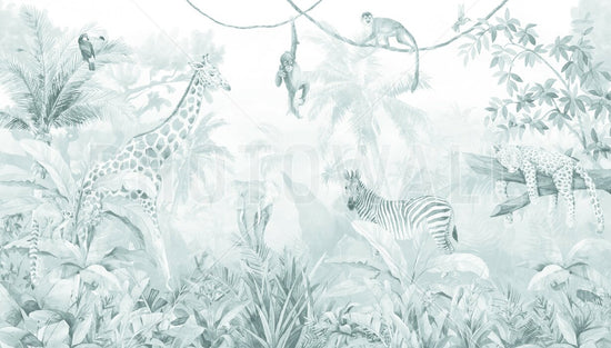 PHOTOWALL / Jungle Friends with Jungle Background - Turqouise Wall Mural (e94549)