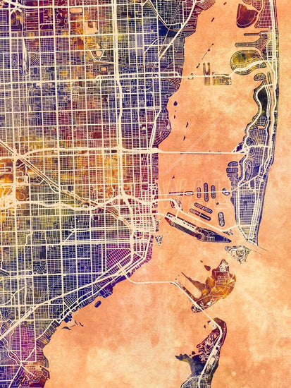 PHOTOWALL / Miami Florida City Street Map - Burn (e94826)