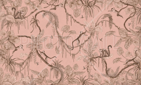 PHOTOWALL / Playful Monkeys - Monochrome - Pink (e94962)