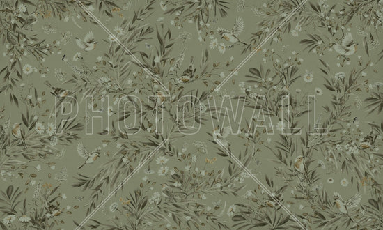 Zoom PHOTOWALL / Playful Robins - Monochrome - Green (e94977)