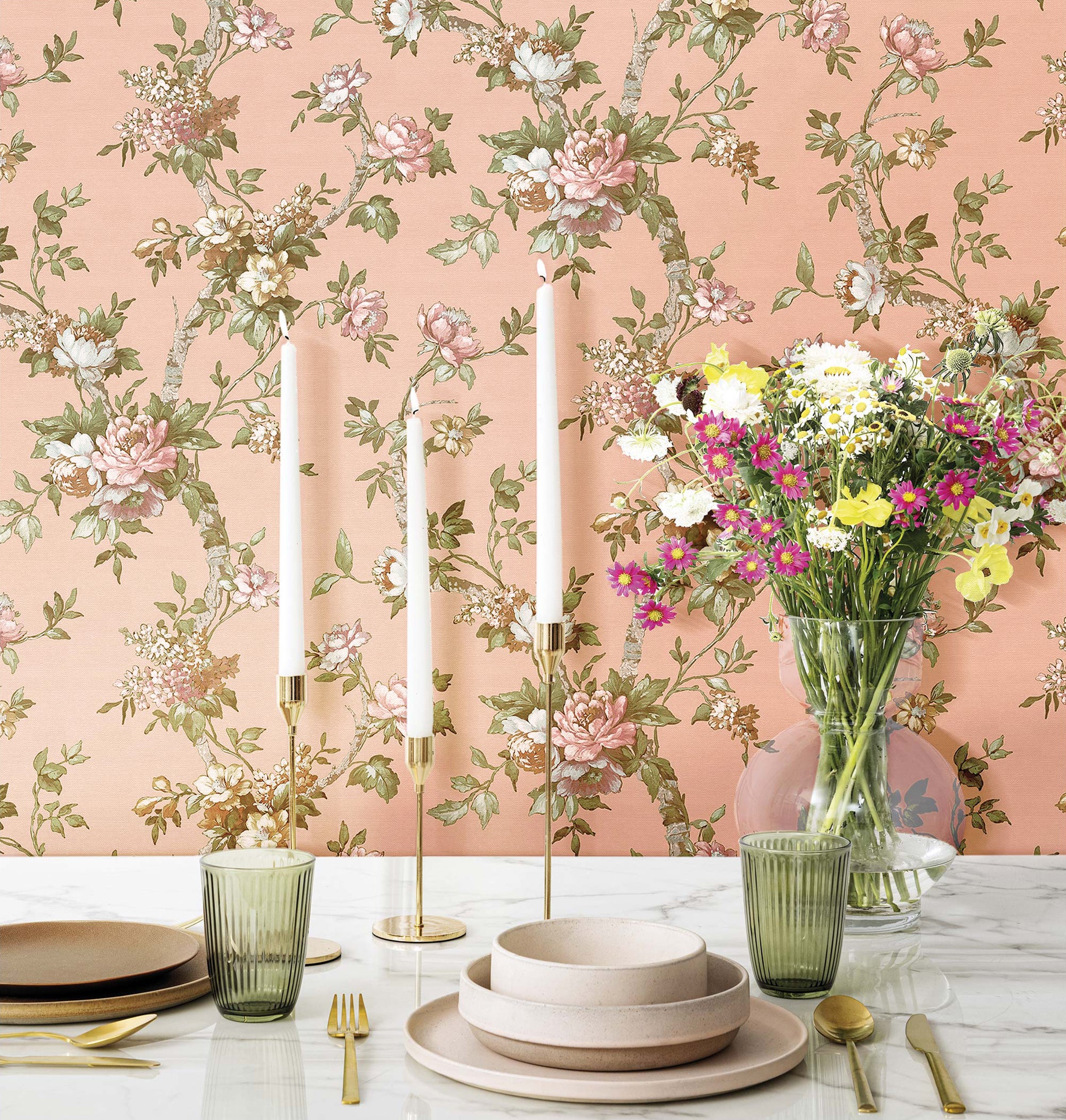 ピーチパールのベースカラーが大人向け花柄を演出しています。