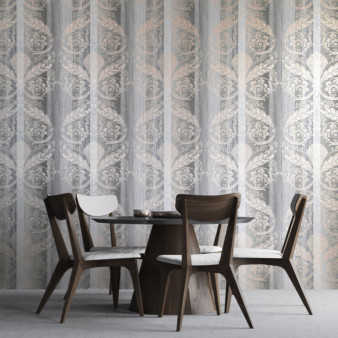 「NERITES」の名を持つこのフローラルパターンは、濃い色合いでは豊かさと華やかさを、明るい色合いでは洗練された気品を感じさせます。同コレクションの壁紙「POSEIDON」と組み合わせると、よりいっそう魅力が広がります。どちらのデザインにも繊細な光沢があり、美しい光の戯れを空間に生み出します。