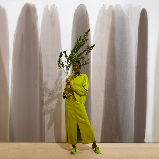 抽象表現主義の画家、Morris Louis(モーリス・ルイス)にインスピレーションを得た「Flood」は、色彩とフォルムの本質的な意味を探求したデザインです。手描きのラインが、時間帯や光の当たり方によって色が移ろう印象的な表情を生み出します。