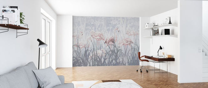 PHOTOWALL / Flamingos in the Grass - Gray (e321308)