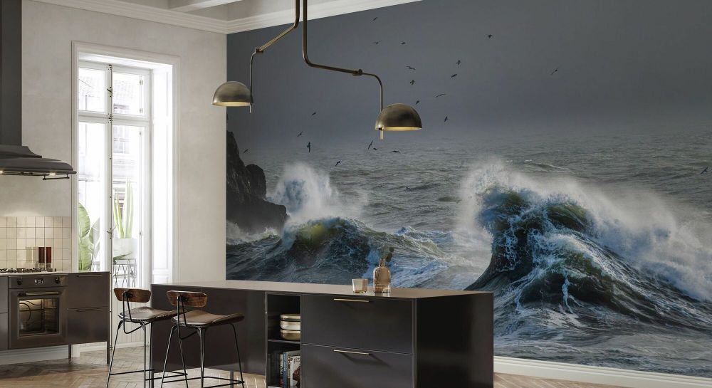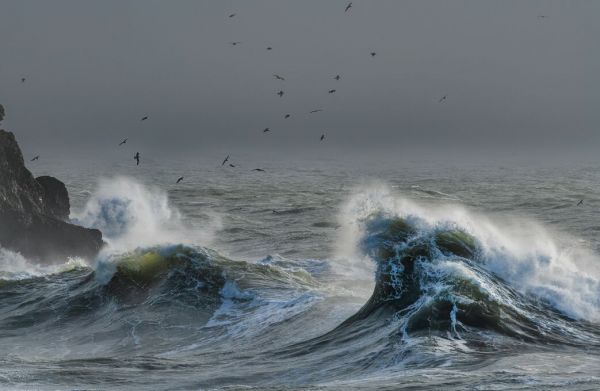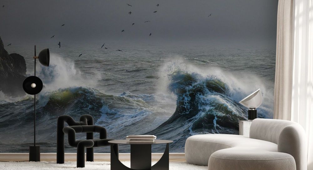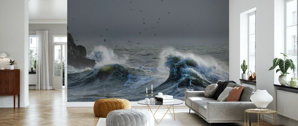 PHOTOWALL / Flock of Herring Gulls Flying Over Rough Sea (e93352)