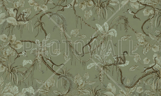 PHOTOWALL / Playful Monkeys - Monochrome - Green (e94967)