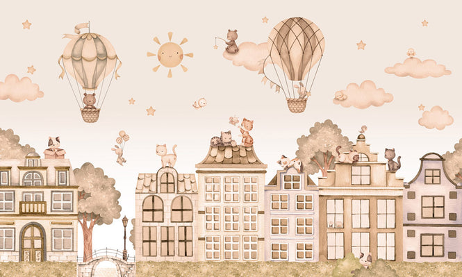 キャットシティーに、くまさんとうさぎさんが気球に乗ってあそびにきてくれたよ!